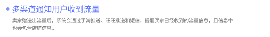 流量錢包是一種可以儲存流量的“錢包“,買家可以通過購物或參與商家的營銷活動獲得流量,獲得的流量可通過“流量錢包”實現(xiàn)提取到手機號碼使用或轉(zhuǎn)贈他人的功能。
