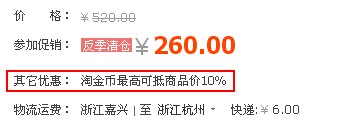 買家在寶貝詳情頁面可以看到淘金幣抵扣的優(yōu)惠提示