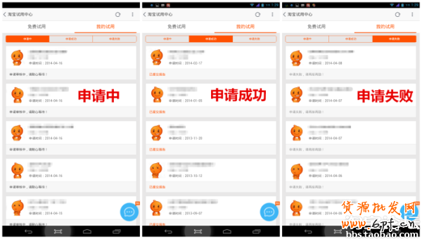 ※ 在我的試用欄目下,您可以輕松查看申請中的試用、申請成功的試用、申請失敗的試用。如有申請成功,可以再手機(jī)上點擊領(lǐng)取哦~~~