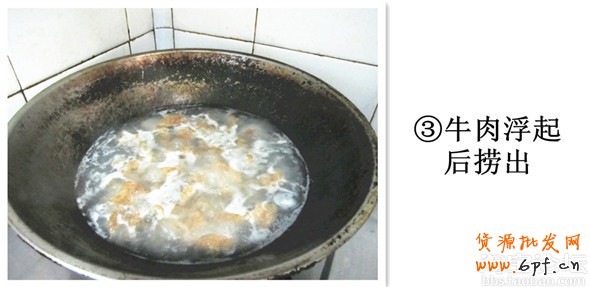 當(dāng)牛肉浮起后,就熟了。這時(shí)就可以撈出備用。