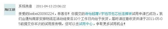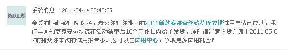 三、是否可以將得到試用的東西形成訂單呢,或是以紅包的形式發放給成功通過審核的試用者!這樣更有透明性!或是可以效仿VIP俱樂部一分錢購物這樣的活動,希望可以形成訂單。這樣會方便買家和賣家!讓大家在試用中心可以看到試用者的試用報告,也可以在買家的店鋪中看到試用者的評價!不是很好的一件事嗎?