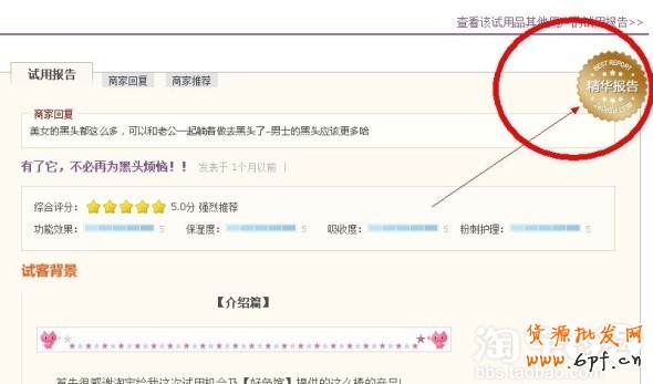 干貨:所以經驗就是,賣家們要多參加試用中心的活動,然后在通知顧客領取試用資格的時候,大家可以用一些獎勵政策,鼓勵試客發布真實的,詳盡的試用報告。那樣被小二看到精華帖的機會就大很多!!!