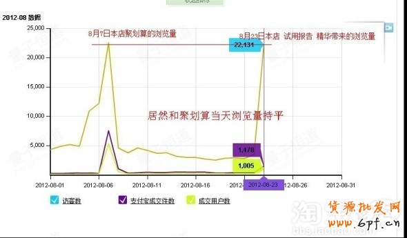 居然當天整體頁面流量達到了22131,和我們8月7日參加聚劃算的瀏覽量持平,