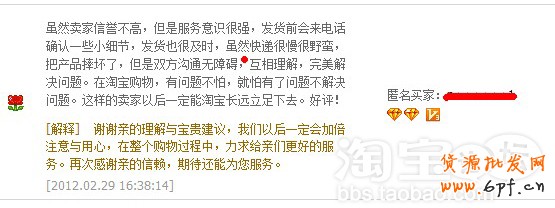 下面這張圖是由于客服態度很好,買家爛貨也簽收了,還要不用補發,給好評,真不簡單啊!