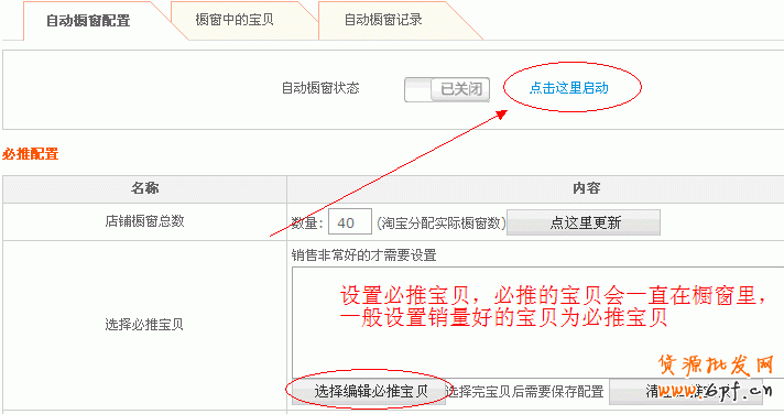 下面我們再以工具吧網店助理為例,這個軟件里有“自動櫥窗配置”這個功能,只要開啟,就會自動推薦快要下架的寶貝,同時可以設置必推寶貝(設置后會一直在櫥窗里,不會被取消推薦)和過濾不推薦的寶貝。