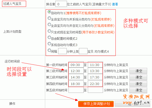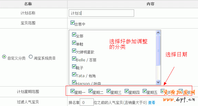 進入后,根據需要選擇是按分類還是寶貝建立計劃,一般情況下選擇按分類建立計劃,填好計劃名稱,選好分類、星期范圍、上架時間類型以及時間段(一般用默認的類型和時間段),保存上架計劃就可以了。