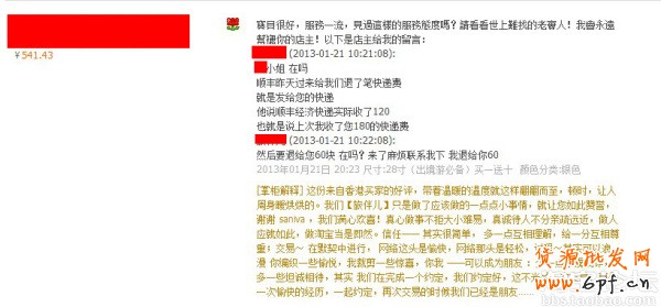 - 你看,就這么簡單的解決了這個問題,我聽到很多淘友在群里交流的時候說,今天買家收到東西不滿意,然后自己的東西已經沒利潤了買家還不滿意,然后背地把買家噼里啪啦一頓罵,說碰到極品買家了,也不肯給買家點補償什么的,結果換來的是差評!我覺得這樣做很傻,何必呢?為了那一點點錢,得到一個中差評,事后你還要花不知道多少精力去和買家溝通修改一個評價,還未必能修改的過來,有這時間和精力當初買家找你協商的時候你干嘛去了?所以遇到問題的時候大家要學會換位思考,不能以你每天混在淘寶上的心態來認為買家和你一樣懂淘寶,畢竟買家對很多問題還是沒有你賣的人清楚的,有問題了一定要真誠面對和解釋!