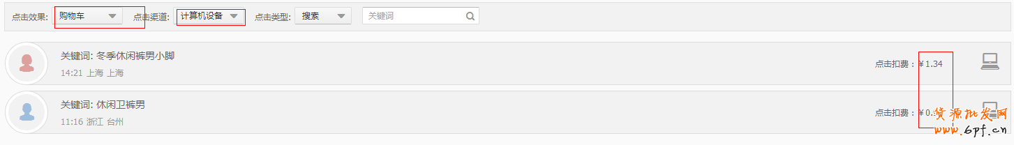 3、觀察關(guān)鍵詞的點擊單價來判斷此關(guān)鍵詞的成交趨勢,如下: