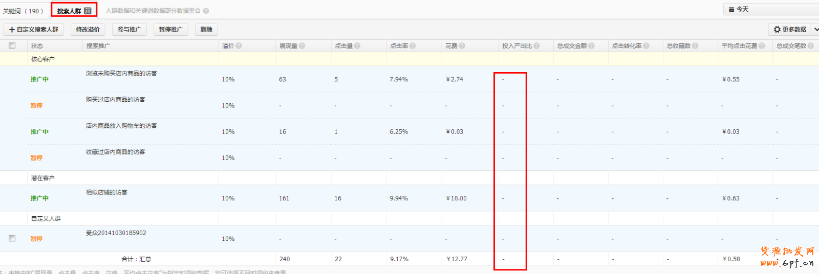 點擊[推廣計劃]中的[標(biāo)準(zhǔn)推廣],選擇[今天],看到今天現(xiàn)在的實時數(shù)據(jù),紅色框ROI〈1,綠色框0〈ROI〈1,黑色框ROI〉1,針對這三種ROI,我們應(yīng)該對計劃做出不一樣的調(diào)整。