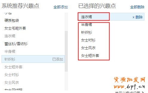 測試時,先用店鋪主推產品的興趣點去測試,根據獲取的流量、ctr和cpc,再適當放寬至相關的興趣點。例如推廣連衣裙時,可先選擇”連衣裙“,根據投放的數據,再看是否增加相關興趣點。