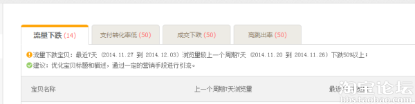 ◆伴隨著寶貝溫度計,異常寶貝也再次在賣家中心后臺的基礎上再次升級,這個功能以往賣家掌柜只能自己通過量子的數據自己去挨個看寶貝的數據,這次直接給歸類了,流量下跌,支付轉化低,成交下跌,高跳失率等,直接把這些寶貝分類出來,針對問題, 快速的分析問題,做出解決方案,很好的一項功能。