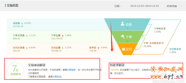 ◆這應該是經營分析里面的一大亮點,也是眾多同學此次很夸贊的一個功能,漏斗型的交易分析能更讓掌柜或者運營來看到店鋪的交易情況,訪客,下單,支付更能清晰的掌握,而且還有交易波動的解讀以及轉化率的解讀,能詳細的了解交易情況,更直觀。