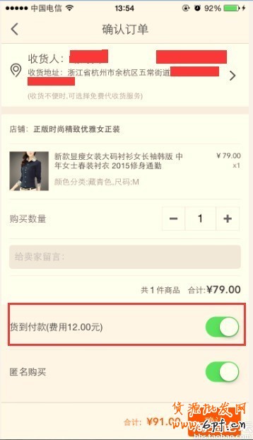 (手淘端貨到付款下單選項,在支付方式中展現。)