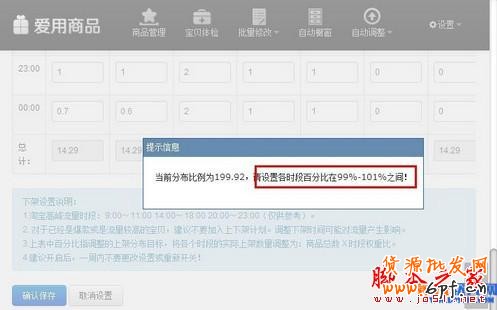 重新調整比重,比如,你超過了101%,那么你需要適當的降低某些時間短段的比重,假如你保存的時候看到【保存成功】,你才能說是成功設置了。