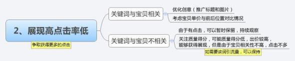 先進行確認,關鍵詞跟寶貝是否相關(主要看屬性和類目)。如果相關度比較好的,可以通過優化寶貝創意圖片來提高點擊率;如果相關性較差的,需要這個關鍵詞引流的可以先暫時保留,關注一段時間看看;如果不相關的話,就要考慮更換關鍵詞了。