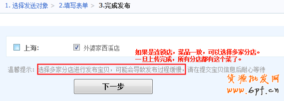 5、發布菜品時,可以選擇多家分店一起上傳?