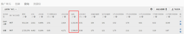 站內,站外選擇的定向是一樣的,但是在定向的消耗能力上,站內訪客定向和DMP定向的消耗基本在1:1,而站外資源位是訪客定向消耗大一些,由此可以看出站外資源位用于拓展店鋪流量和店鋪人群是非常有利的。
