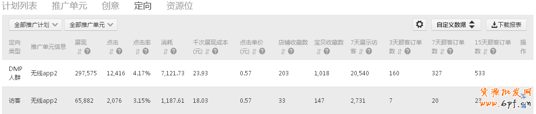 3、無線端投放時可以多嘗試不同的定向,尤其是DMP定向,效果比較好。