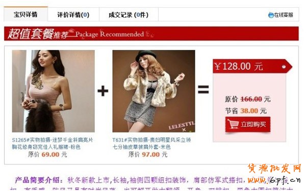 5、搭配套餐。多個寶貝搭配一起銷售打折促銷,提高店鋪的銷量,通過設置店鋪中2個寶貝搭配一起銷售更優惠的功能。如,設置一件裙子和一件披肩外套一起買的話可以減38元,這樣的促銷方式是否也很有力度了。