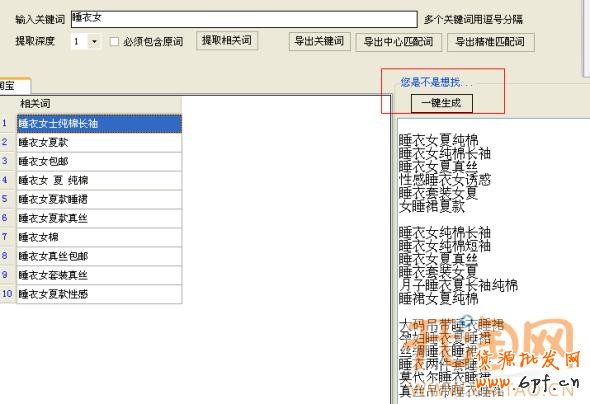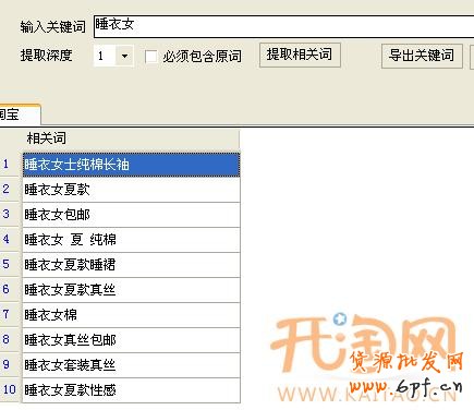 打開該工具,輸入一個中心詞,比如“睡衣”“睡衣女”,點擊提取相關詞,等下面關鍵詞出現(xiàn)完畢后,點擊導出關鍵詞,就可以保存搜到的詞,這部分就是淘寶首頁搜索框下的熱門詞,我們可以在里面挑選適合推廣寶貝的關鍵詞去添加。