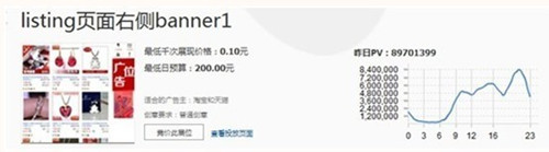 如下圖,點(diǎn)擊“查看展位信息”,我們可以看到右側(cè)的該廣告位的昨日流量曲線。對(duì)此,小編建議商家們可以參考曲線流量的多少來及時(shí)調(diào)整預(yù)算和出價(jià),高峰期黃金期的競價(jià)價(jià)格會(huì)更高一些。