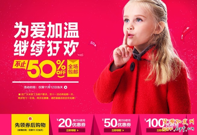 1、感恩返場,用大幅海報表明雙11的成績,并回饋買家,應買家要求狂歡再續,引起共鳴,并以優惠券、滿贈等方式繼續打動消費者。