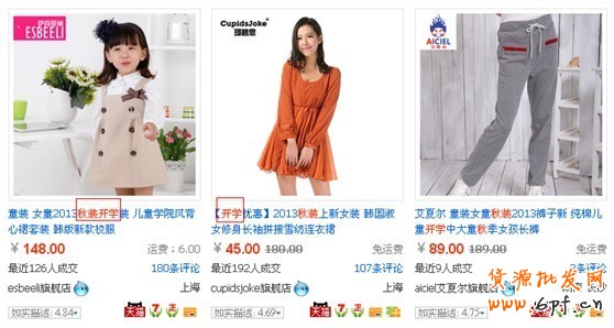 每年的9月1日是開學日,低年級的孩子們少不了書包、文具、運動鞋,高年級的大同學則需要各種電腦手機數碼產品,以及適合宿舍生活使用的簡易衣柜鞋架等生活用品。這時,這些產品無疑是受人歡迎的。“開學禮物”、“衣柜宿舍”等關鍵詞能大展身手,帶來不少搜索流量。當然,服裝也一樣。秋季即將來臨,也正值開學之際,服裝產品的關鍵詞加上“開學”、“開學優惠”、“學生”等字眼,在淘寶首頁的自主搜索流量必然會上升。