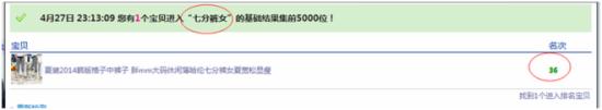到4月27日的時(shí)候的寶貝的這個(gè)最熱門的關(guān)鍵詞的排名已經(jīng)在第36位了,寶貝的銷量情況也不錯(cuò)。