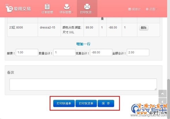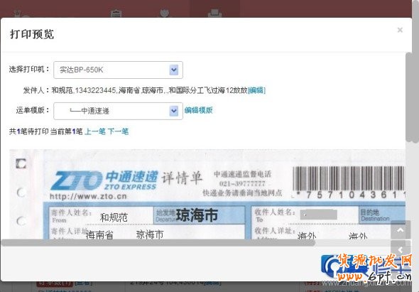 如果您是單獨(dú)打印其中一筆訂單,可以點(diǎn)擊訂單后邊的“打印快遞單”按鈕 ,進(jìn)行單筆訂單的打印和預(yù)覽:
