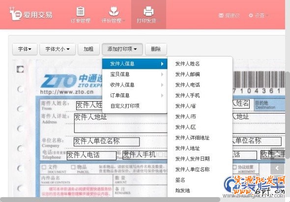 快遞單模板項(xiàng)目:移動(dòng)位置,調(diào)整字體、字體的大小、字體粗細(xì),增加減少項(xiàng)。