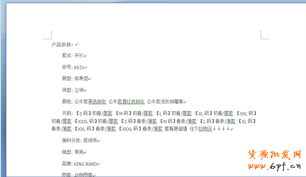 第二步:從第一個商品開始,把前十頁所有商品的“產品參數”復制粘貼到一個WORD文檔里面