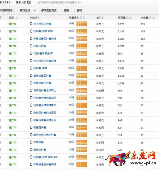 2、每天根據之前數據調整關鍵詞,刪除點擊差的詞或把展現多點擊低的詞修改為中心匹配精準匹配;