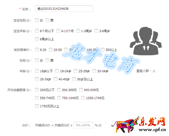 自定義客戶,是針對性別、年齡、月消費額度進行定位,部分類目新添加了類目垂直化標簽,比如女裝風格、類目筆單價;母嬰的寶寶性別、寶寶年齡等一系列標簽。