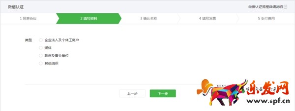 2) 填寫資料:選擇認證主體類型,提交相應的認證材料。