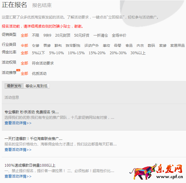 1、通過阿里媽媽后臺的淘寶客活動廣場尋找。(命名,鵲橋)