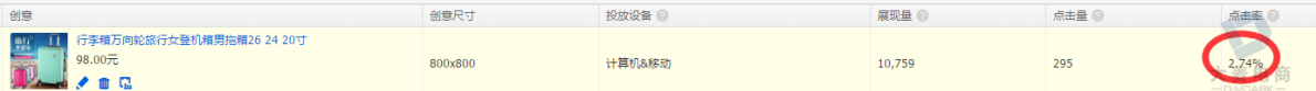1、寶貝創(chuàng)意的投放設(shè)備分析點(diǎn)擊率情況