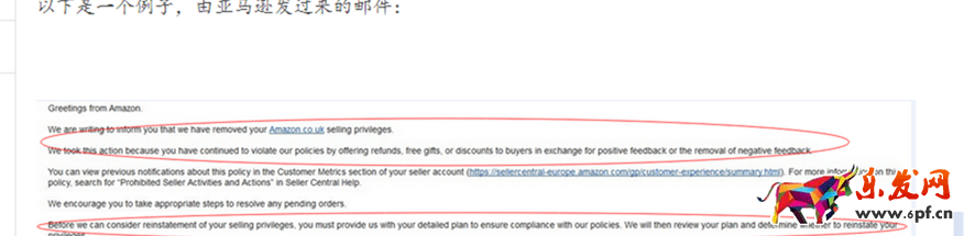 亞馬遜對于這種有償報酬誘導買家留好評的行為是嚴查的。這封郵件的大致態(tài)度就是,再出現(xiàn)這種違反平臺電商規(guī)矩的事情,很抱歉可能就要讓您的店鋪成為歷史的回憶了。
