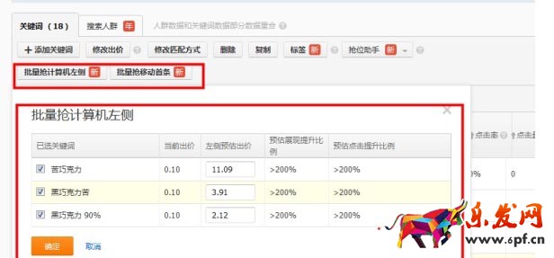 功能點解讀:批量對目標關鍵詞進行優質位置出價。
