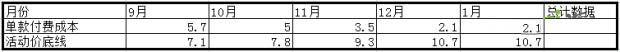 4.關于活動,期間很多單量是活動單,我們事先是把他排除掉了,現在要把付費單次成本拉平計算,如下表: