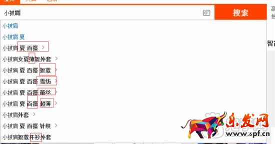 2)在淘寶搜索框中輸入中心詞,會出現一些搜索熱詞,可根據搜索下拉框的關鍵詞的一些拓展詞添加符合寶貝的屬性。