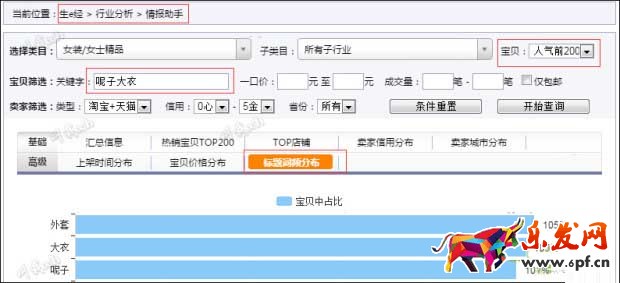 然后我就在下面的詞頻分布中找到了呢子的錯別字妮子,呢子大衣女4.8萬的搜索人氣,113萬的在線商品數;妮子大衣女,7800的搜索人氣,8.8萬的在線商品數,一個很不錯的分詞就這樣挖掘出來了。多嘗試不同的詞查詢,會有千奇百怪的詞等著你發現。