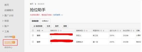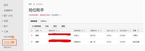 關(guān)鍵詞推廣頁面,點(diǎn)擊搶位助手工具