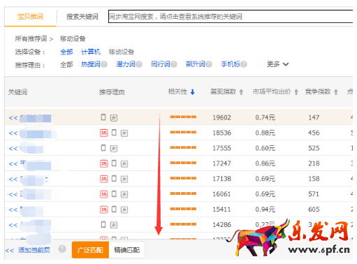 F.關(guān)鍵詞選擇:準(zhǔn)備10-15個或者20-30個精準(zhǔn)關(guān)鍵詞,一般為2級詞或3級詞、4級詞,精準(zhǔn)關(guān)鍵詞=類目詞+屬性詞,通常選詞通過下拉款選擇是最簡單的操作方式,要求相關(guān)性高,質(zhì)量分大于7分以上,出價16-20條或者高于行業(yè)均價的20-30左右即可,每個關(guān)鍵詞保持點(diǎn)擊量在50個以內(nèi),大類目選擇點(diǎn)擊指數(shù)500左右的詞,小類目選擇100-200左右的詞即可。