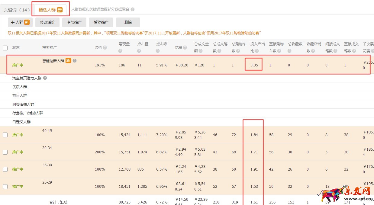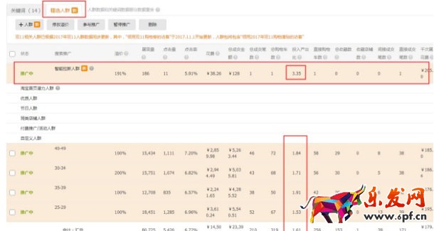 查看計劃的人群,查看多天數據,找到投入產出比最高的人群,并將這部分人群高溢價,其他低產出人群如果數據量小可以直接暫?;蛘邉h除。