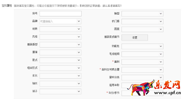 寶貝屬性這塊,如果是代理的,貨號要修改;其他風格特點中,至少有1項不與代理商雷同。