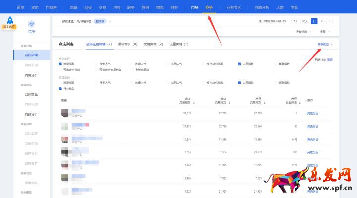第二步:點擊競店分析,可以看到競爭店鋪的,交易指數,流量指數,搜索人氣,收藏人氣,以及加購人氣