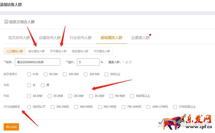 但是對比單品推廣的人群設置,并沒有朝著相對應的去做推廣,如年齡,淘氣值。,消費力,天氣這些情況都沒有很好的做優化調整。比如此店鋪的人群年齡在26到35歲之間,但是直通車并沒有做這方面的,同時,野餐露營對天氣的要求比較高,天氣晴朗,也可以作為一個推廣篩選模式,這種優化對于提高計劃的轉化率有很大的幫助。詳細的優化不在這里做敘述,可以截圖看一下在人群設置這里的內容。