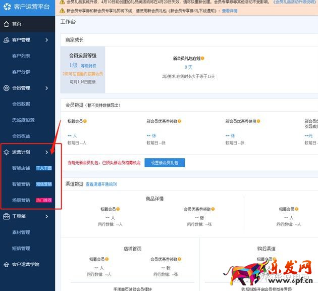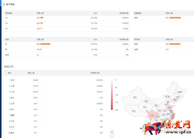 4:我們發現店鋪的游覽和流量還是不錯的,那我們的老客戶轉化工作也是要做的,但是看到咱們店鋪的客戶運營平臺沒有做過運營,這也是后面的一個方向,通過客戶運營平臺可以建立店鋪的會員體系,針對不同的客戶做出營銷方案,同時還有場景營銷,短信營銷等方式,針對我們店鋪,收藏加購,游覽等等人群做選擇投放廣告,是可以給店鋪增加很大一部分營業額的,同時營銷的成本還很低。下面是客戶運營平臺的兩個截圖,一個是主頁。一個是我們的人群畫像。很明顯可以看出,這里的優化工作對店鋪整體轉化率的提升是非常有幫助的。