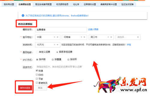 修改自己想要更換的運費模板數據,點擊保存修改即可。