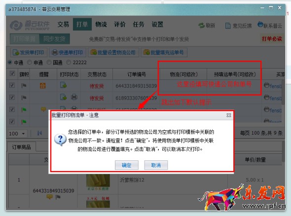 1、如果沒(méi)有預(yù)先填寫快遞公司和單號(hào),會(huì)跳出如下圖默認(rèn)提示,點(diǎn)擊確認(rèn)可繼續(xù)打印,點(diǎn)擊取消,打印取消。